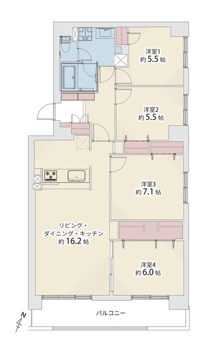 築年月 1985(昭和60)年7月 間取内容 LDK16.2帖 洋7.1帖 洋6.0帖 洋5.5帖 洋5.5帖