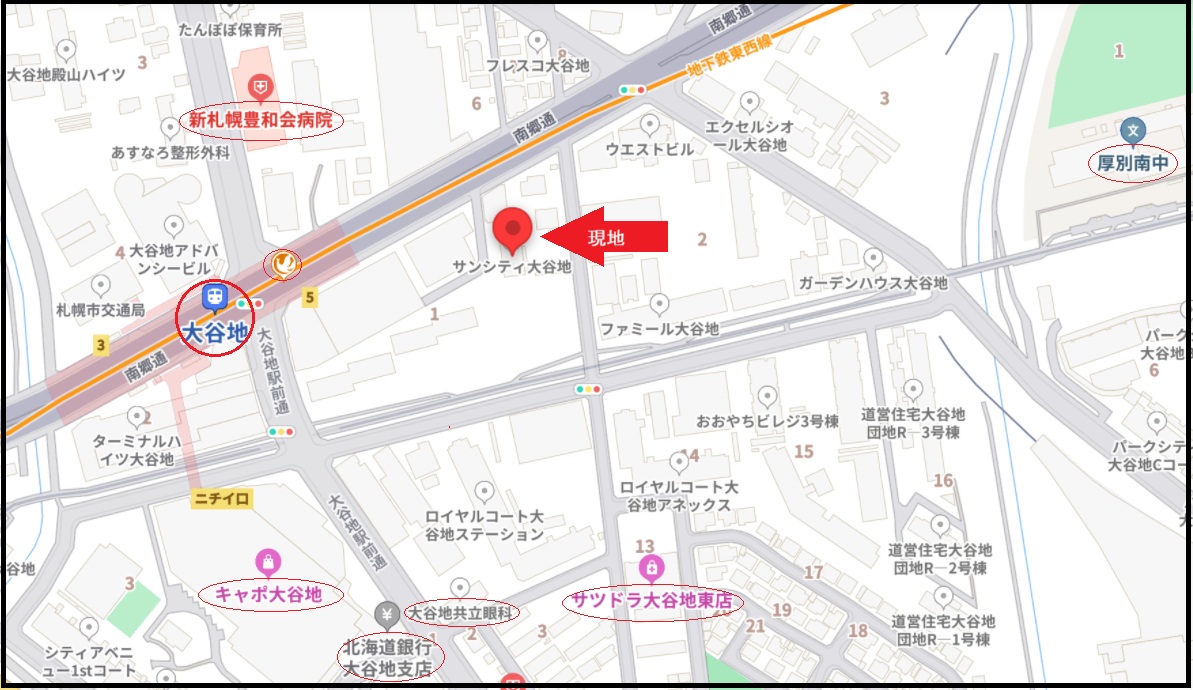 | 所在地 | 札幌市厚別区大谷地東4丁目1-25 | 交通 | 市営地下鉄東西線「大谷地」駅徒歩4分 |