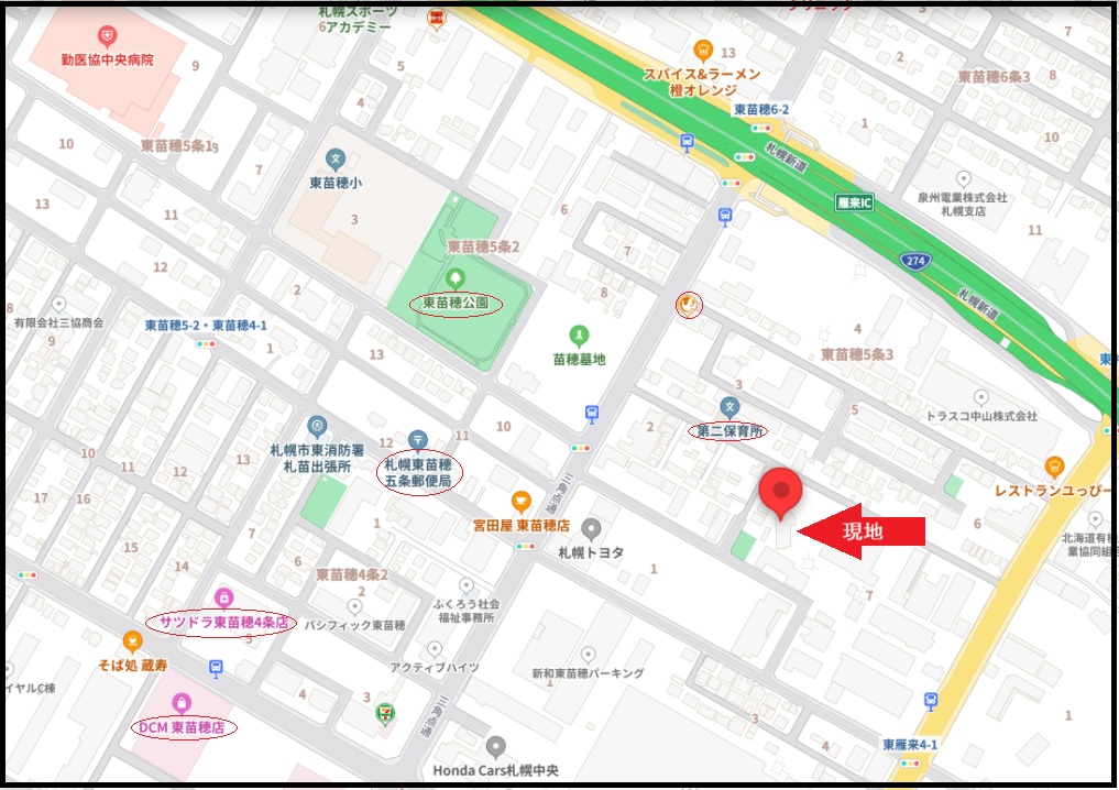 | 所在地 | 札幌市東区東苗穂5条3丁目7-30 | 交通 | 市営地下鉄東豊線「環状通東」駅バス乗車14分 「東苗穂4条3丁目」停徒歩3分 |