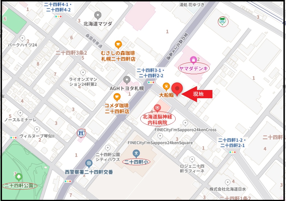 | 所在地 | 札幌市西区二十四軒2条1丁目2-27 | 交通 | 市営地下鉄東西線「二十四軒」駅 徒歩8分 |