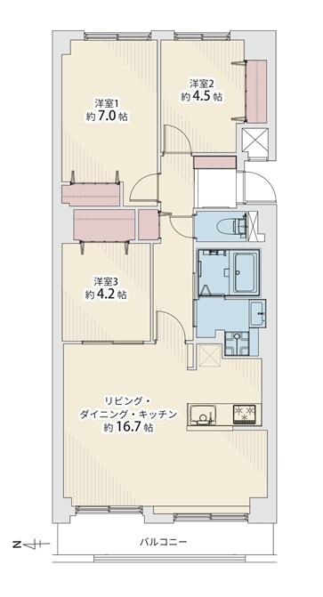 築年月 1987(昭和62)年11月 間取内容 LDK16.7帖 洋7.0帖 洋4.5帖 洋4.2帖