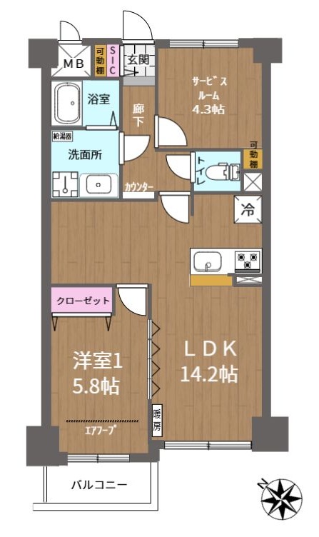 築年月 1995(平成7)年8月 間取内容 LDK14.2帖 洋5.8帖 S4.3帖