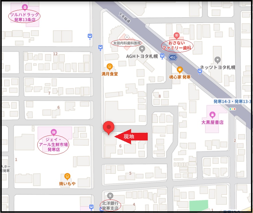 所在地 札幌市西区発寒13条3丁目 交通 JR函館本線「発寒中央」駅徒歩13分