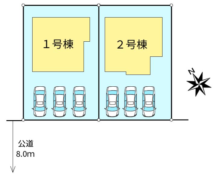 接道状況 南西側8.0m公道  現況 建築確認番号:1号棟:第R07SHC117786号  2号棟:第R07SHC117787号