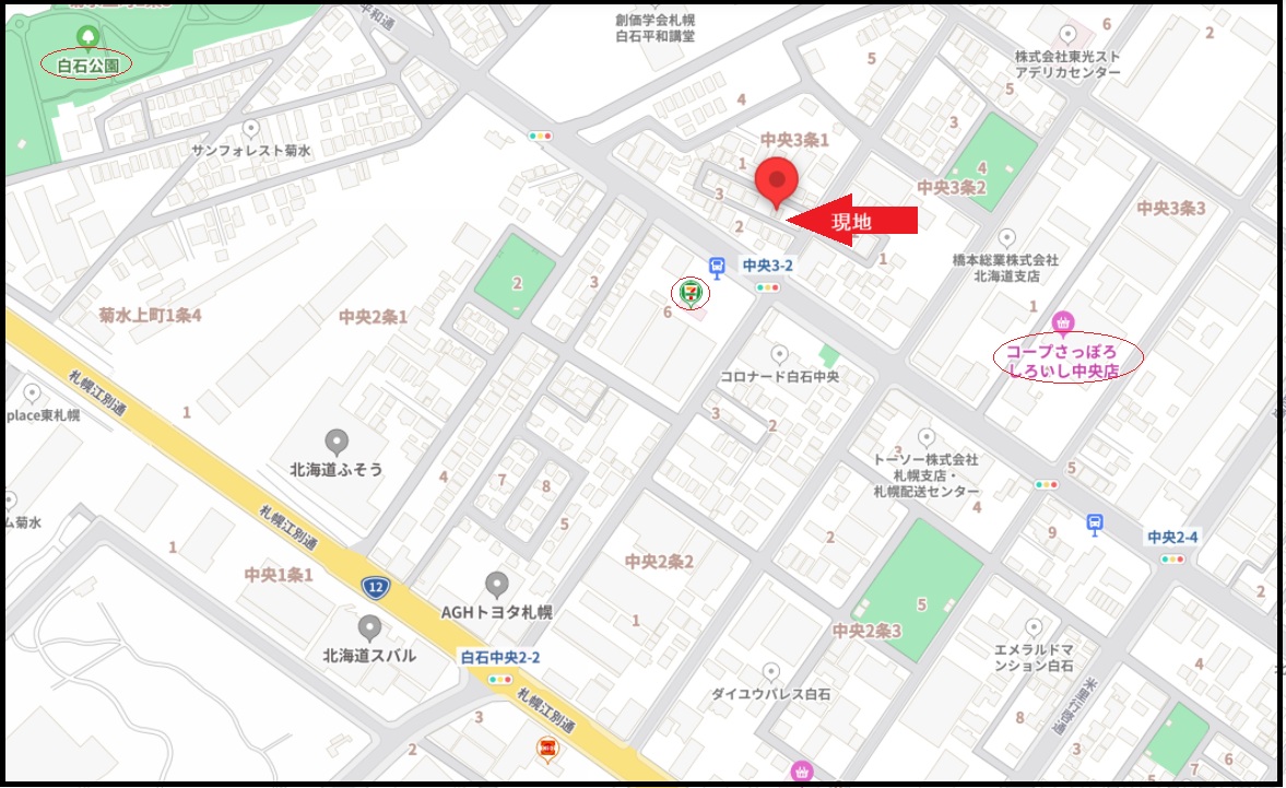 所在地 札幌市白石区中央3条1丁目3-7 交通 地下鉄東西線「東札幌」駅 徒歩20分